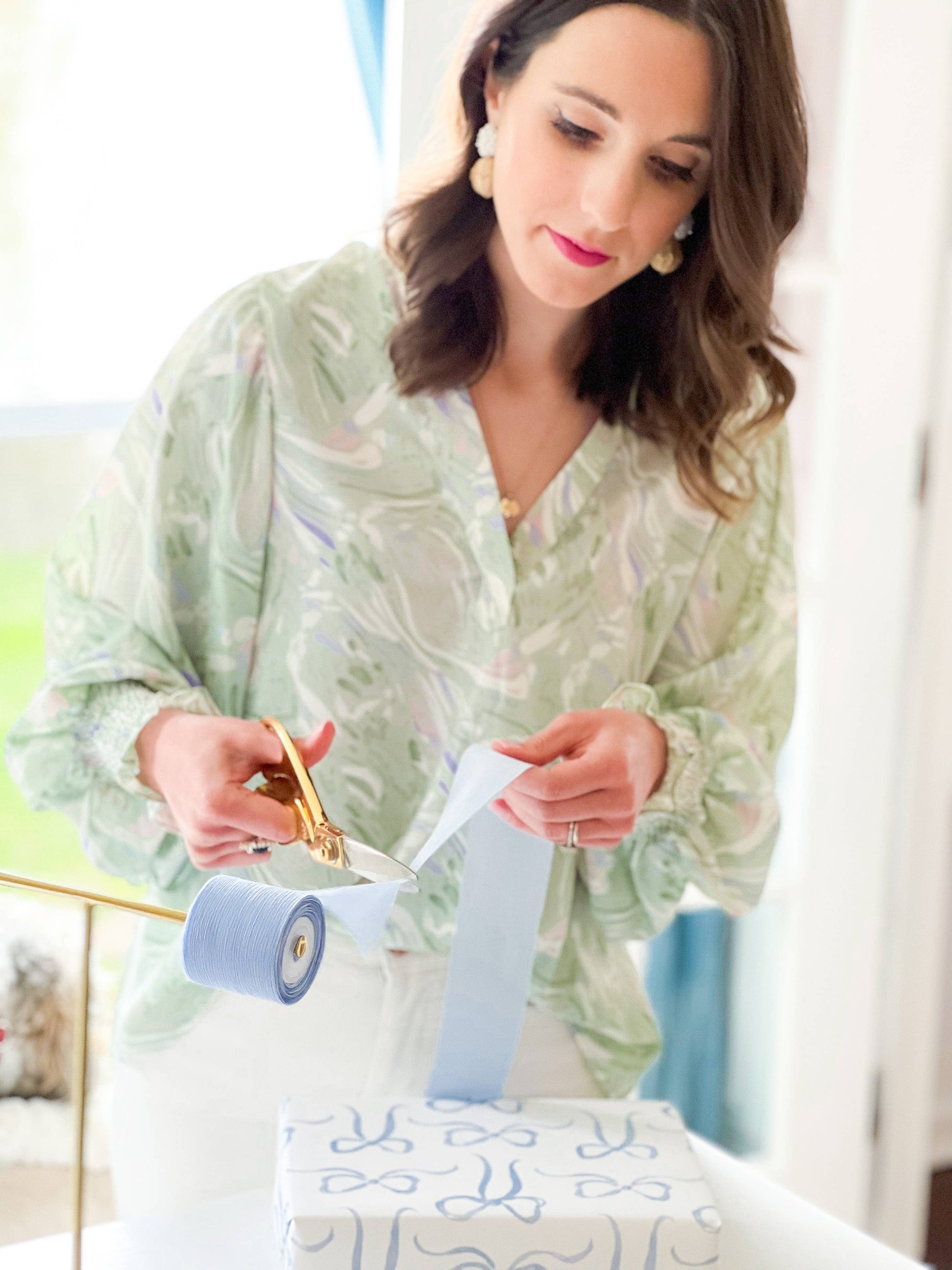 This is a set of French Blue Bows Watercolor Wrapping Paper Sheets, measuring 20”x29” per sheet. Each sheet will wrap one standard sized gift box!